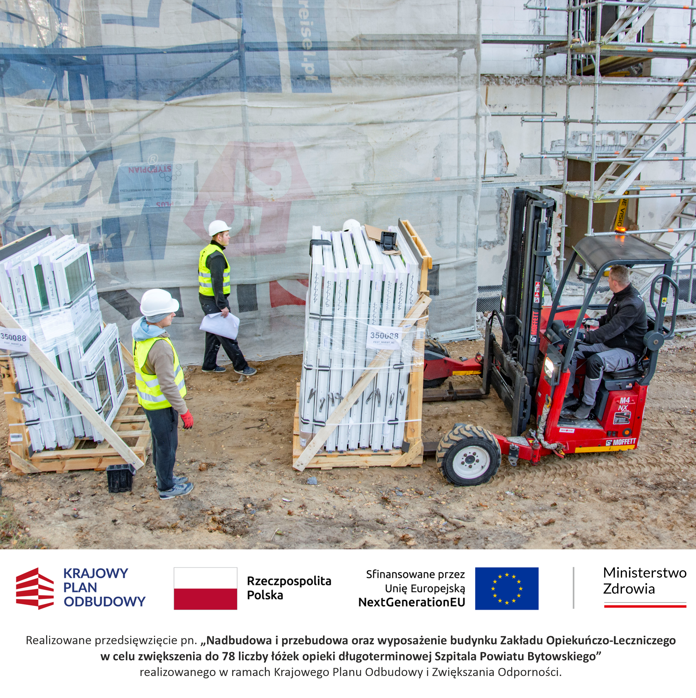 Realizowane przedsięwzięcie pn. „Nadbudowa i przebudowa oraz wyposażenie budynku Zakładu Opiekuńczo-Leczniczego w celu zwiększenia do 78 liczby łóżek opieki długoterminowej Szpitala Powiatu Bytowskiego sp. z o.o." realizowanego w ramach Krajowego Planu Odbudowy i Zwiększania Odporności.