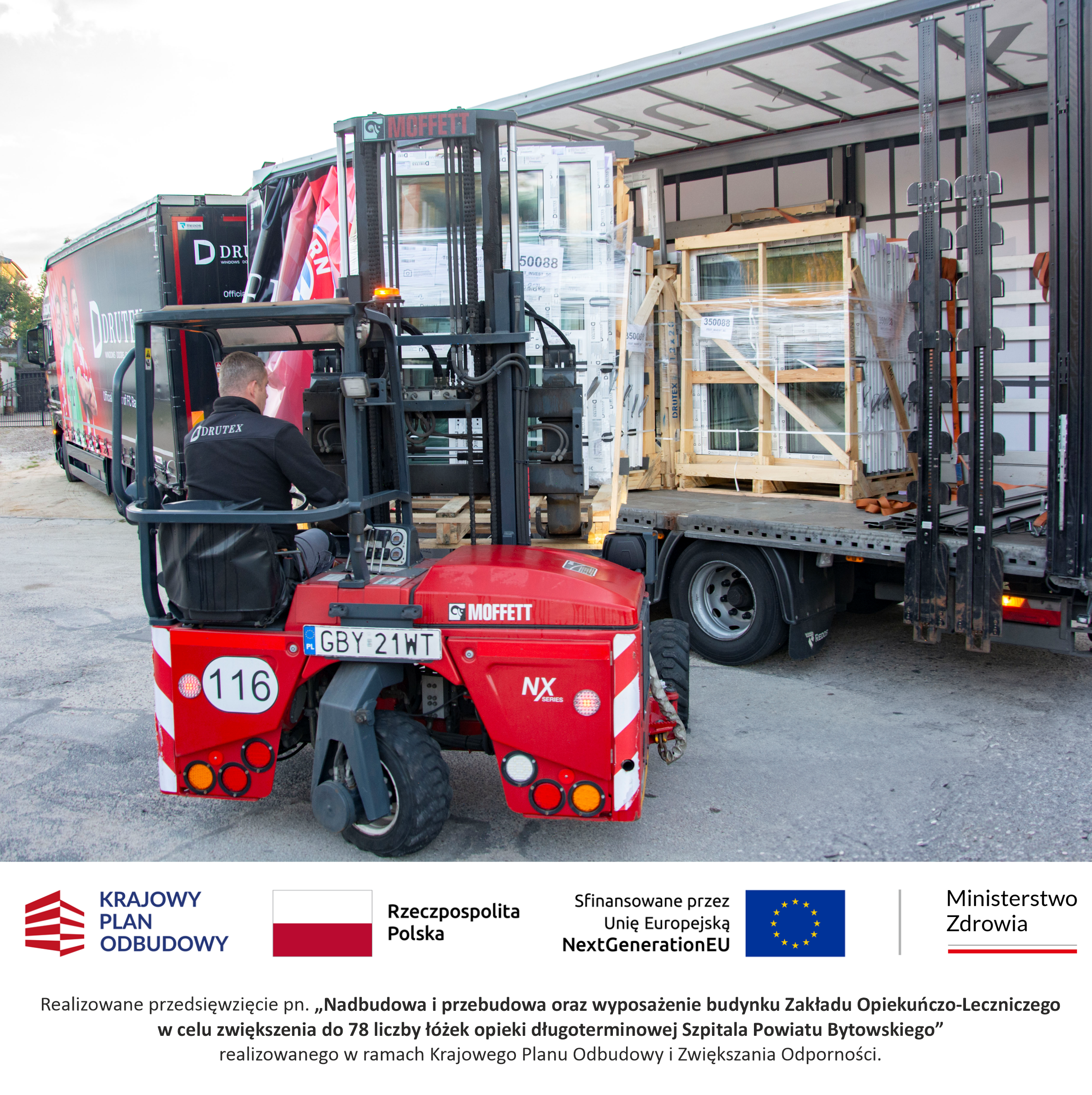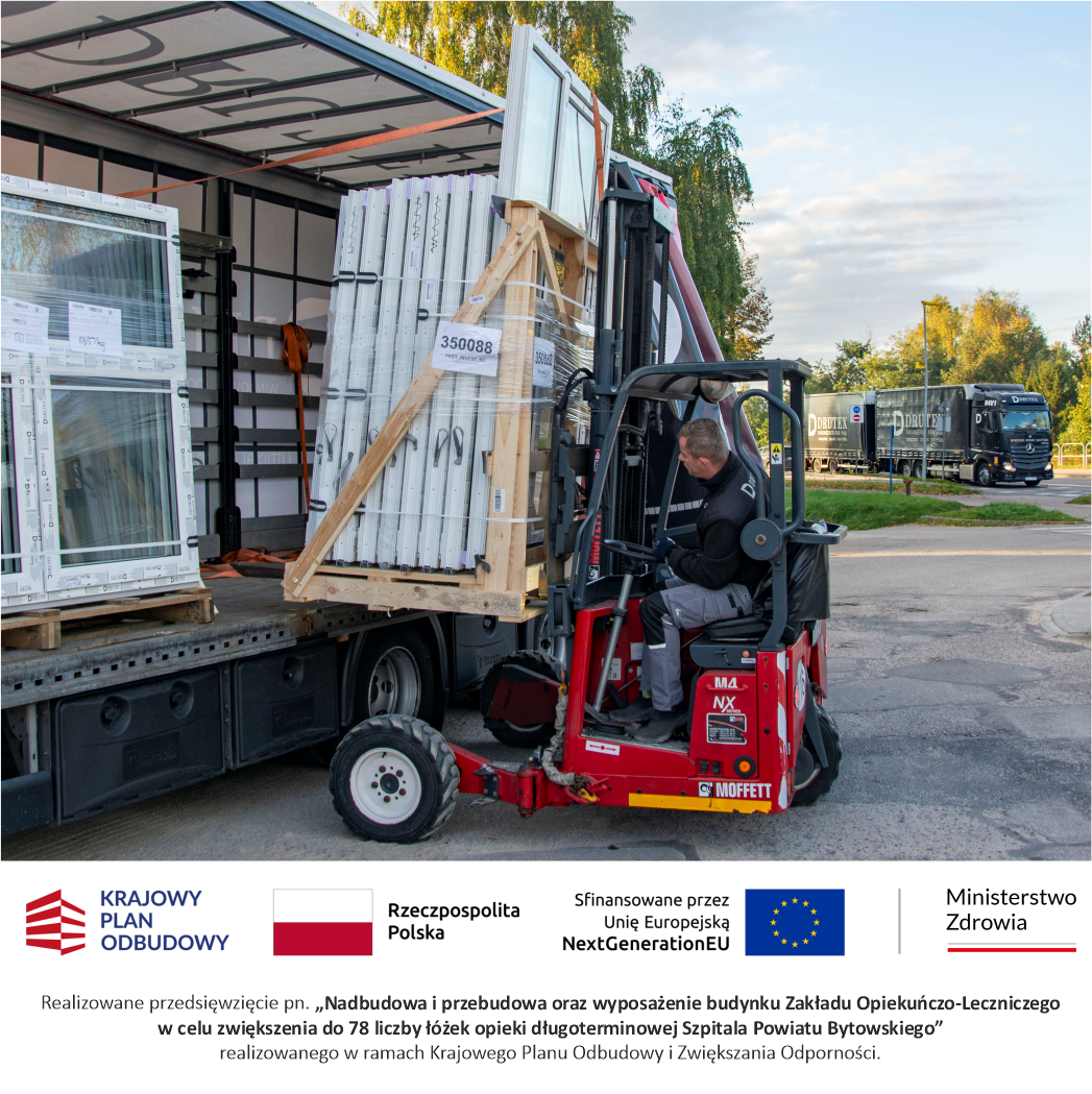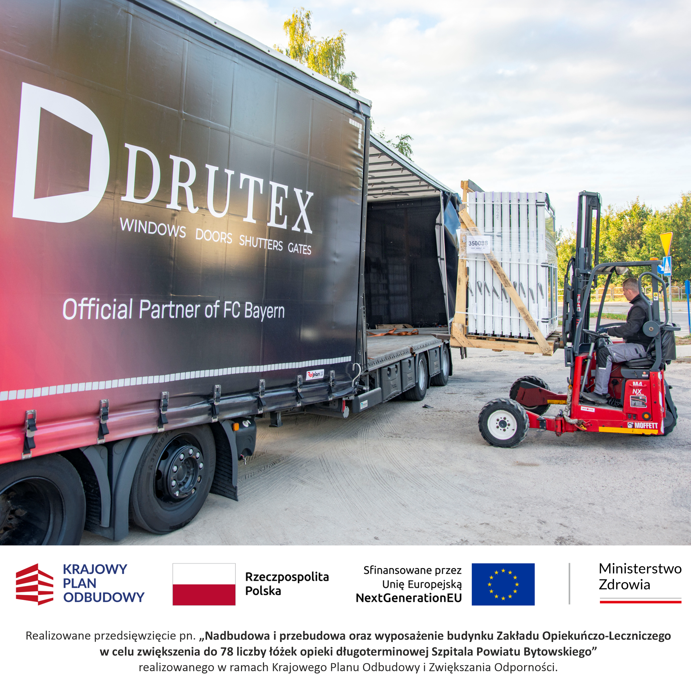 Na placu budowy pojawiły się już także okna firmy DRUTEX S.A., które wkrótce zostaną zamontowane. To kolejny krok, dzięki któremu budynek coraz bardziej przypomina gotowy obiekt, który w niedalekiej przyszłości będzie służył pacjentom.